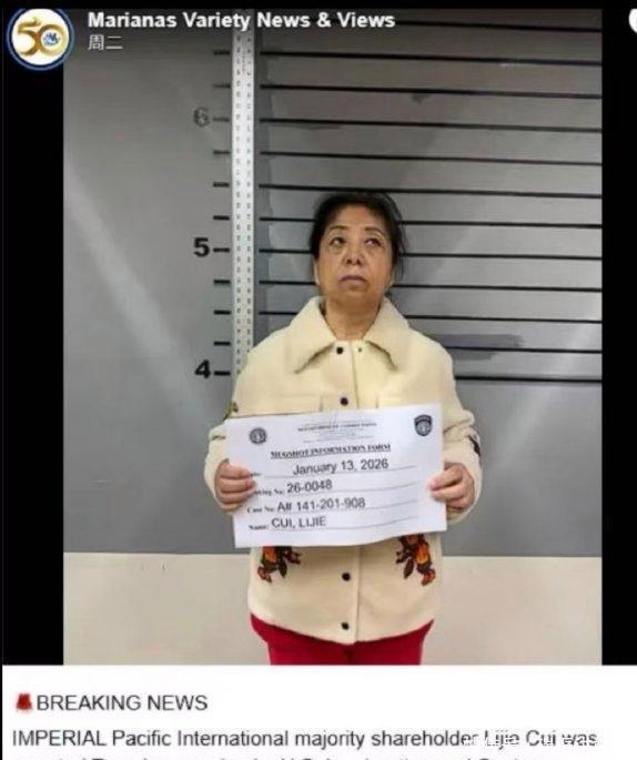 然而,这座看似风光无限的 “赌博王国”,早已暗藏危机。2018 年,一项深度调查揭露了赌场的多重黑幕:不仅利用旅游签证非法雇佣中国公民,规避当地劳工法规,还存在严重的安全隐患。更令人震惊的是,调查指出赌场向塞班当地官员及其家人支付数百万美元贿赂,以此换取运营便利。这些违规操作最终引火烧身,2020 年,博华太平洋及相关公司三名高管被提起公诉,罪名包括非法雇佣外籍劳工、转移 2400 万美元资金资助非法活动等。同年 3 月,赌场被迫关停,2024 年 4 月正式申请破产保护,申报负债高达 1.658 亿美元,千亿商业帝国轰然倒塌。如今崔丽杰的被捕,让这场持续多年的争议事件再度升级。截至目前,ICE 尚未公布具体被捕细节和听证会日期,但外界普遍猜测,此次移民违规指控或与早年赌场非法雇佣、资金转移等行为存在关联。值得注意的是,崔丽杰长期定居中国香港,此次在塞班岛落网,是否会牵扯出更多过往违规操作,成为网友热议的焦点。